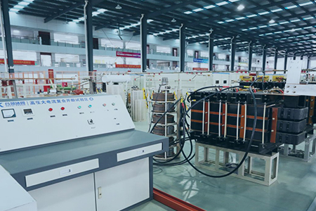本实验室具备高达16000A大电流温升实验系统,通过电动调压器升流,可长时运行满足各个电流等级开关类产品 1.1 倍通流考验,连续运行至试品温度稳定,适用于研发及出厂试验。