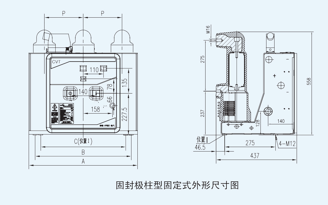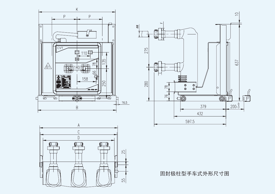 | 额定电流 | 额定短路开断电流 | P | A | B | C |